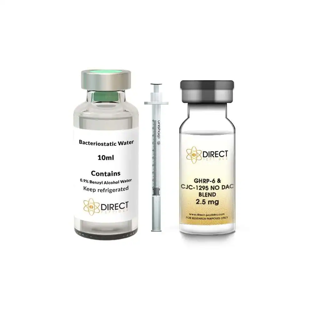 This product contains a sealed research vial with a pre-mixed 2.5mg blend of GHRP-6 and CJC-1295 No DAC. The vial format allows accurate reconstitution, flexible experimental dosing, and precise analytical preparation. Moreover, the pre-mixed composition ensures consistent peptide ratios across all experiments, reducing variability caused by manual blending. As a result, researchers can maintain stable conditions throughout extended study designs.